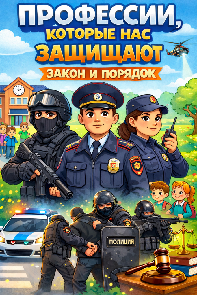 «Құқық және тәртіп» айлық шеңберінде «Бізді қорғайтын мамандықтар» тақырыбында оқушылармен танымдық әңгіме өтті. Балалар заңдылықты, тәртіпті қамтамасыз ету және адам құқықтарын қорғаумен байланысты кәсіби қызмет атқаратын адамдар туралы білді.